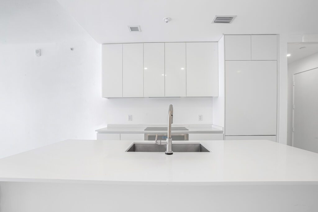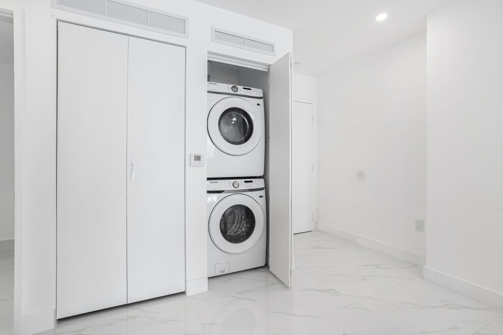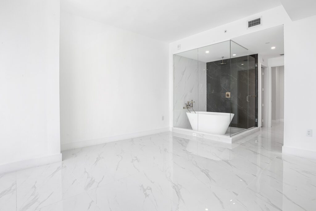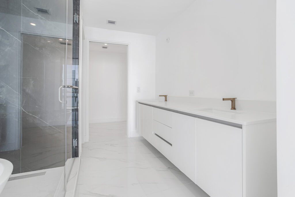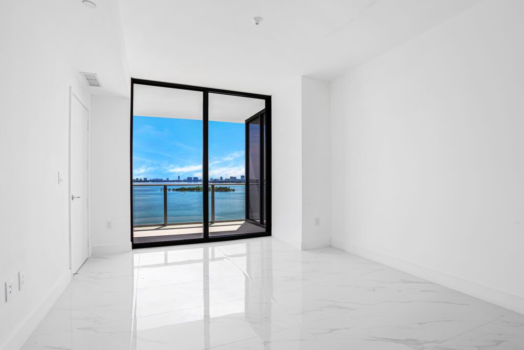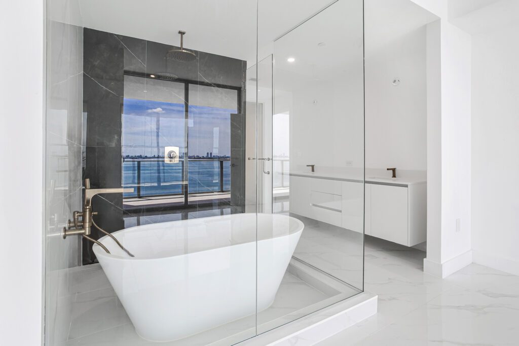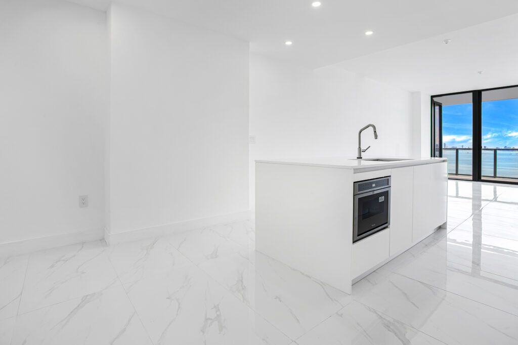 This residence features an open living and dining concept that connects seamlessly to the kitchen and terrace area. Floor-to-ceiling windows bring in abundant natural light while framing the incredible waterfront scenery that makes Edgewater one of Miami’s most sought-after residential locations.
